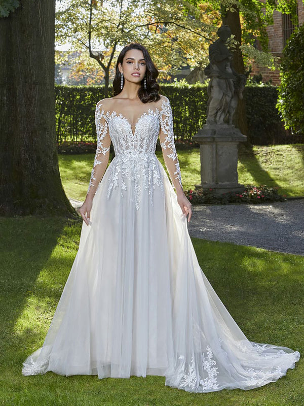 Romantic Illusion Long Sleeve Lace Wedding Dress Tulle Boho Bridal Gown Ms2505222