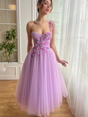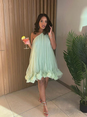 One Shoulder Tulle Mini Prom Dress Floral Hemline Homecoming Party Dress Ms2506023