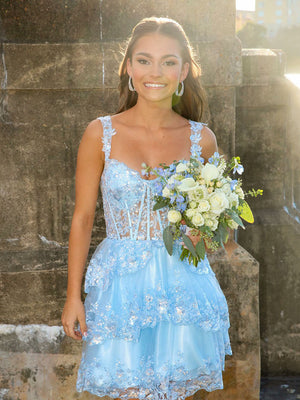 Tiered Lace Mini Prom Dress Sparkly Corset Short Homecoming Dress Cocktail Gown Ms2506074