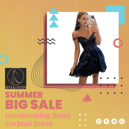 Off Shoulder Sequin Party Dress Layered Lace Short Prom Dress Ms2509055