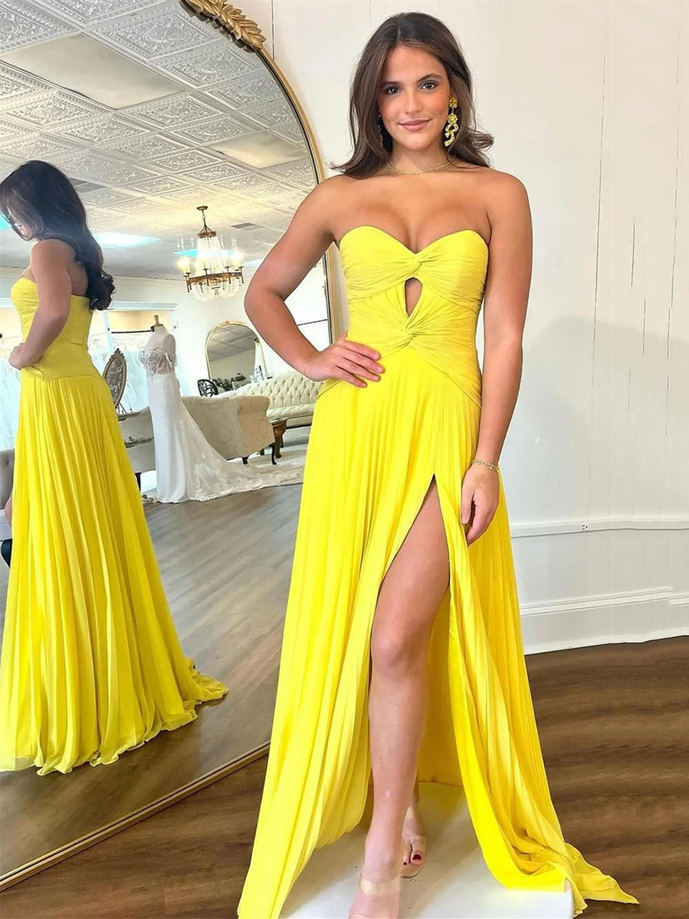 Pleated Cut-out A-line Prom Dress Sweetheart Sexy High Slit Elegant Evening Dress Ms2504012