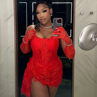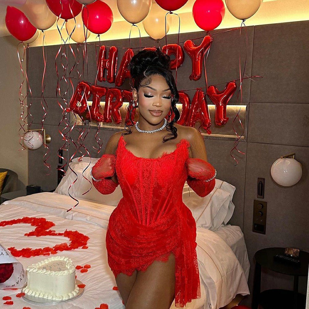 Mermaid Birthday Evening Dress For Black Girl Strapless Lace Short Prom Gown Club Night Party Gown