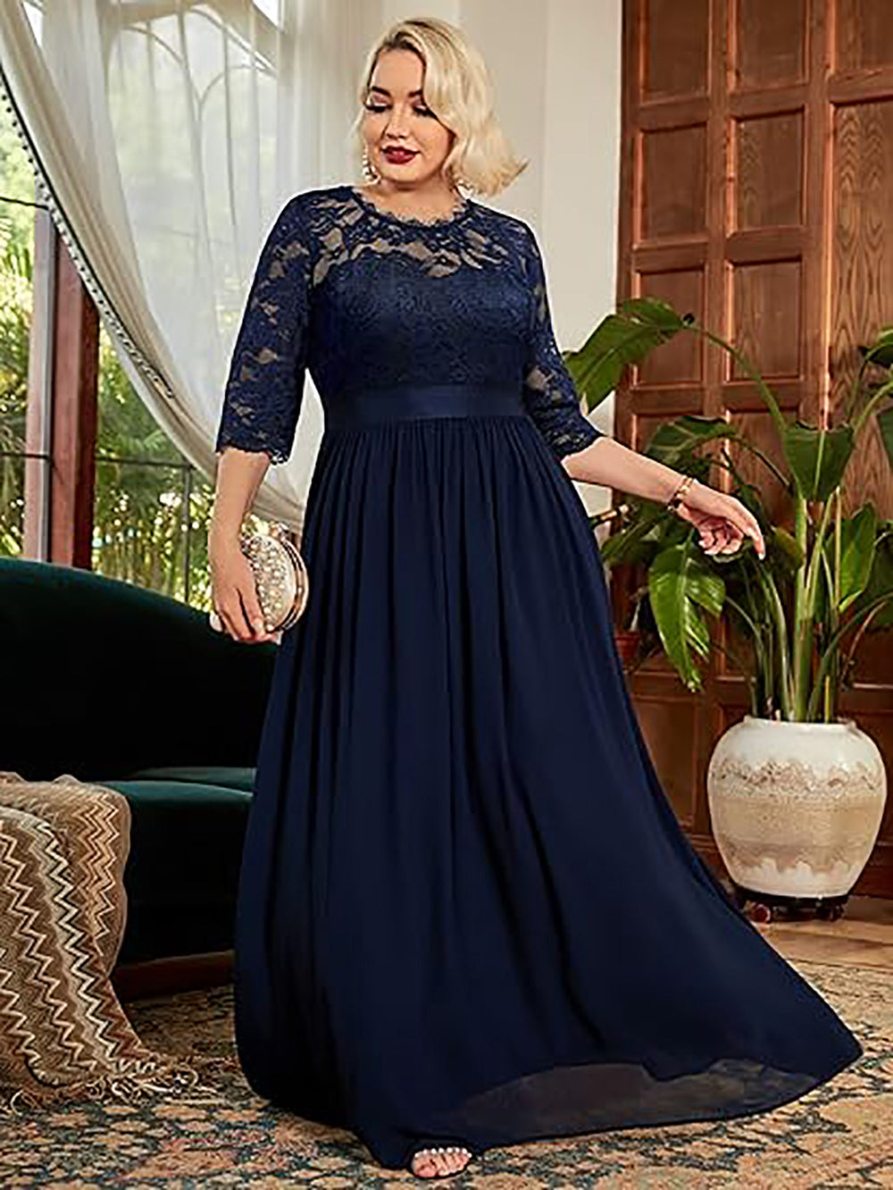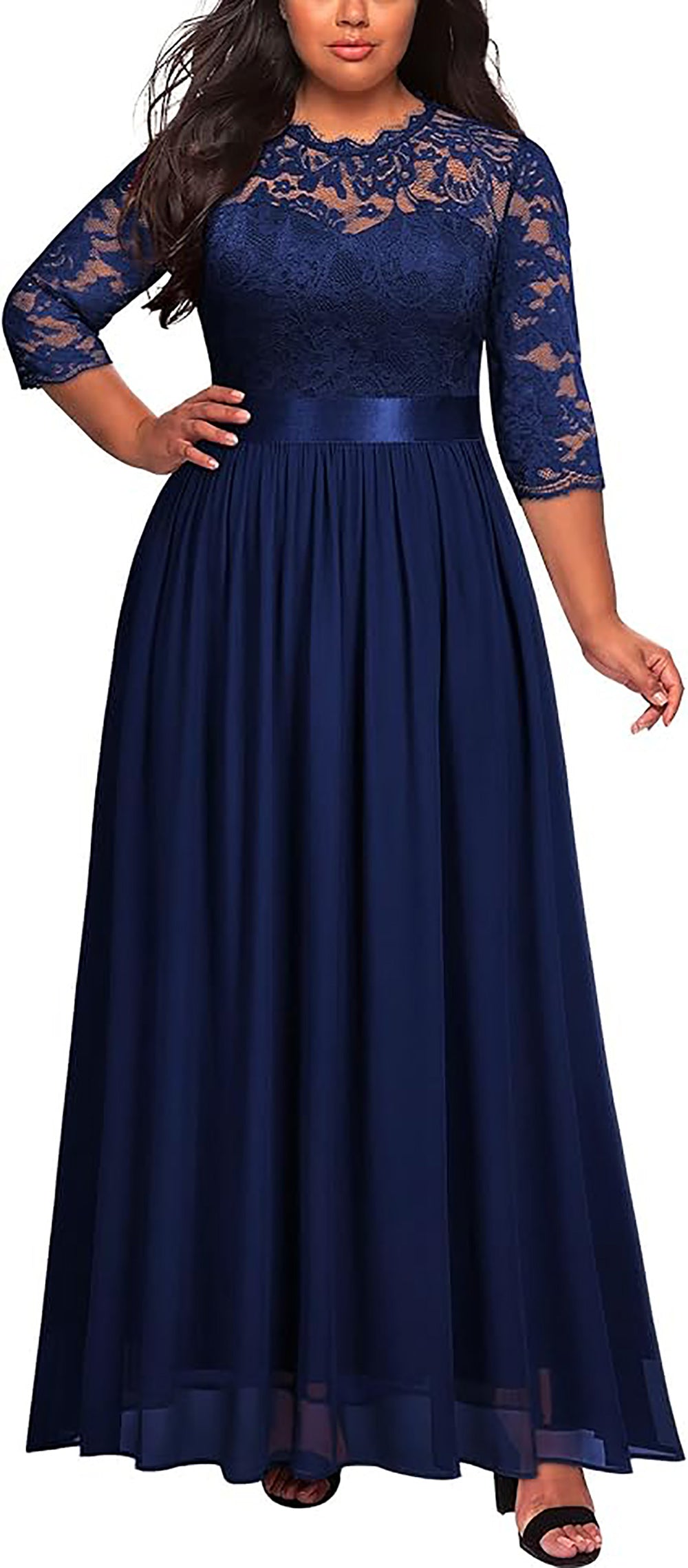 Virina Formala Vespera Robo Flora Laĉa Plus-Granda Maxi-Geedziĝa Festa Robo Formala Robo