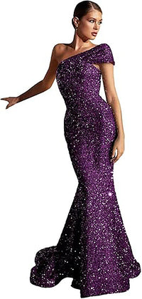 Abiti da sera con paillettes a una spalla, abito da sera sirena scintillante, abito lungo da festa Ms2503103