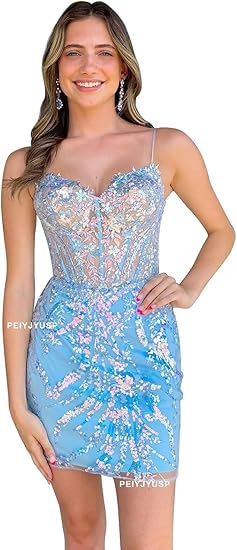 Abiti aderenti con paillettes scintillanti per il ritorno a casa 2025 per adolescenti, abito corto da ballo con spalline sottili, abito da cocktail