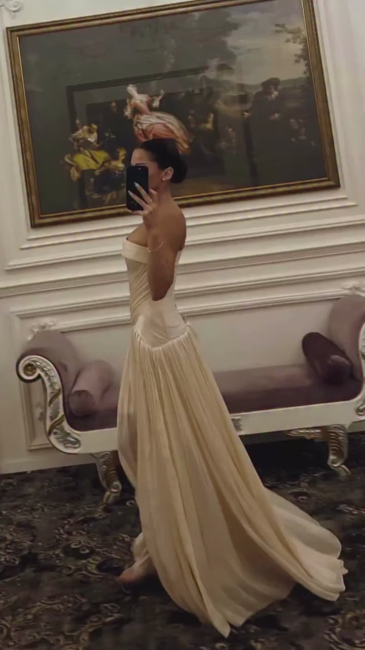 Champagne Strapless Pleated Shiny Evening Dresses Women's Long Prom Dress Ms2604171