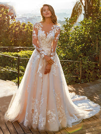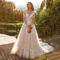 Vestido de Noiva com Apliques de Renda 3D Decote Profundo em V Vestido de Casamento Sexy em Linha A Vestido de Noiva para Praia Ms205106