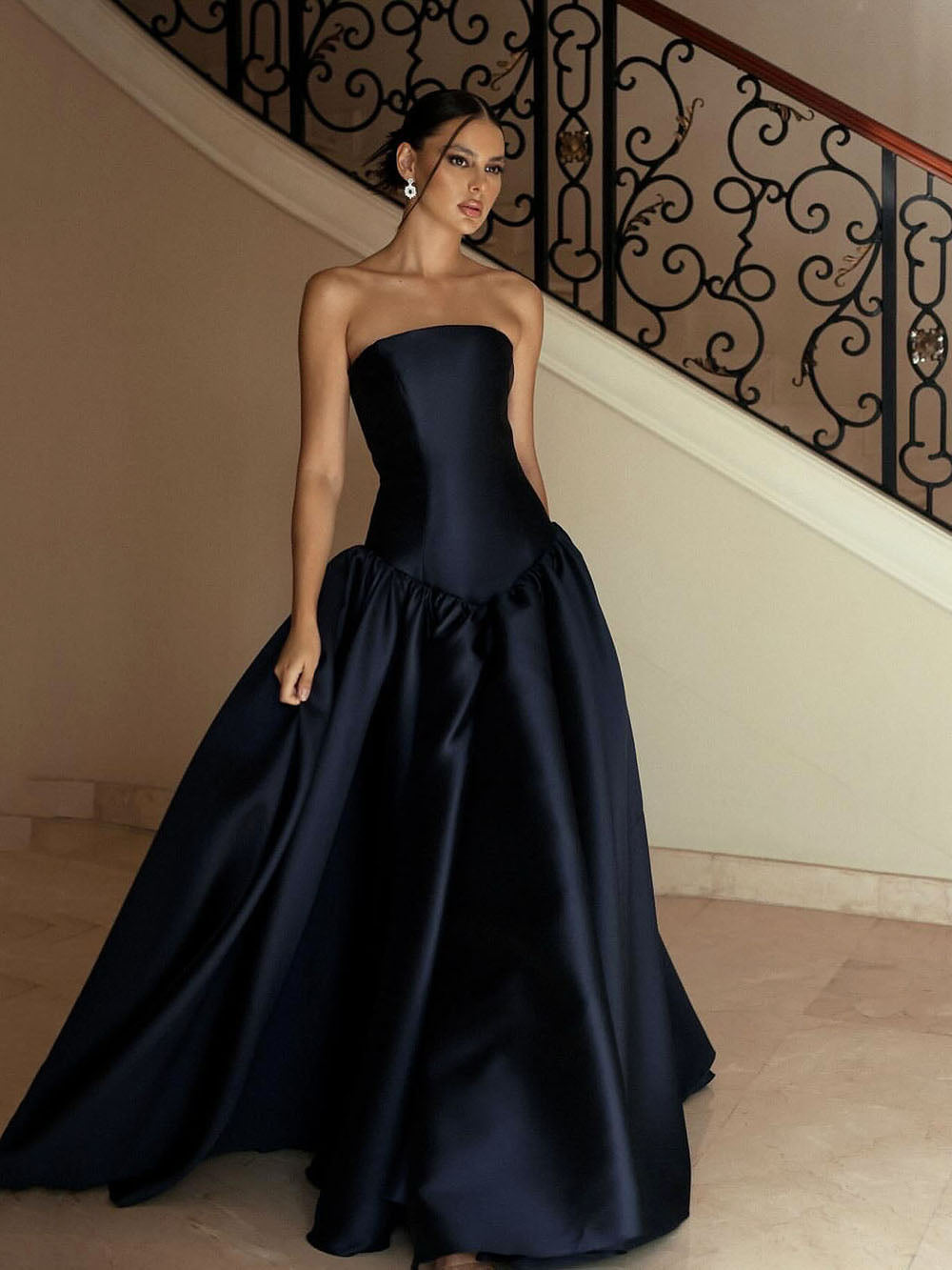 Vestido Formal de Cetim Sem Alças 2025 Vestido de Festa de Comprimento Até ao Chão Linha A Vestido de Baile Vestido de Festa Ms2505022