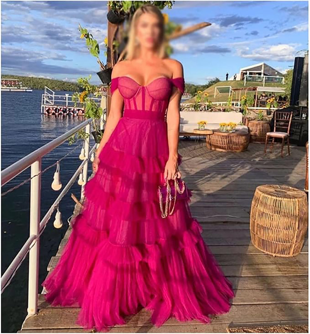Vestido de Baile Fúcsia em Tule com Folhos em Camadas, Corpete, Vestido de Noite Formal para Festa de Baile Ms2505081